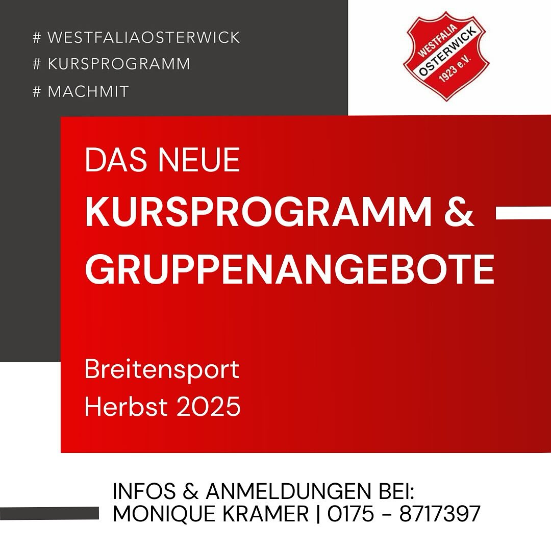 Ein kostenloses und unverbindliches Schnuppern ist in allen Sportangeboten möglich. Diese und viele weitere sportliche Angebote finden Interessierte auch auf auf der Westfalia-Homepage und in den sozialen Netzwerken. Informationen und Anmeldungen gibt es bei Monique Kramer unter Tel. 0175/8717397