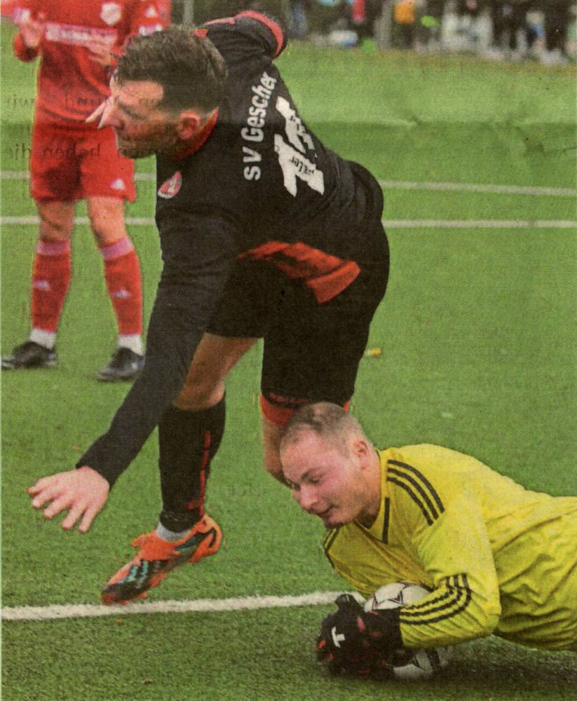 Nach der Pause rückte ein Mann in den Mittelpunkt: Jeremias Rotthäuser, dessen gelbes Trikot für die Gescheraner zum roten Tuch wurde. „Wir warm viel zu hibbelig und haben komplett die Kontrolle verloren", musste Mario Worms ein Chancenfeuerwerk der Gescheraner miterleben, denen er ein großes Kompliment zollte: